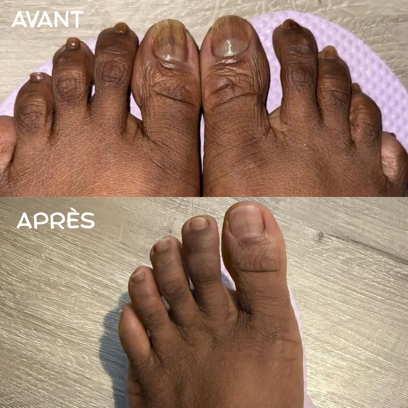 J'ai littéralement TOUT essayé, des crèmes sur ordonnance aux médicaments par voie orale, en passant par tous les remèdes naturels possibles, et rien n'a fonctionné. C'est vraiment un cadeau du ciel. En seulement deux semaines, je constate une grande différence et je n'ai plus de brûlures sous les ongles, ce qui est un bonus ! Je peux voir la forme de la lune réapparaître sur mes gros orteils et mes deuxièmes orteils sont presque revenus à la normale ! (Je l'applique parfois trois fois par jour si je suis à la maison). Je trouve que cela vaut vraiment le prix pour que mes ongles de pied commencent enfin à avoir un aspect et une sensation normaux !